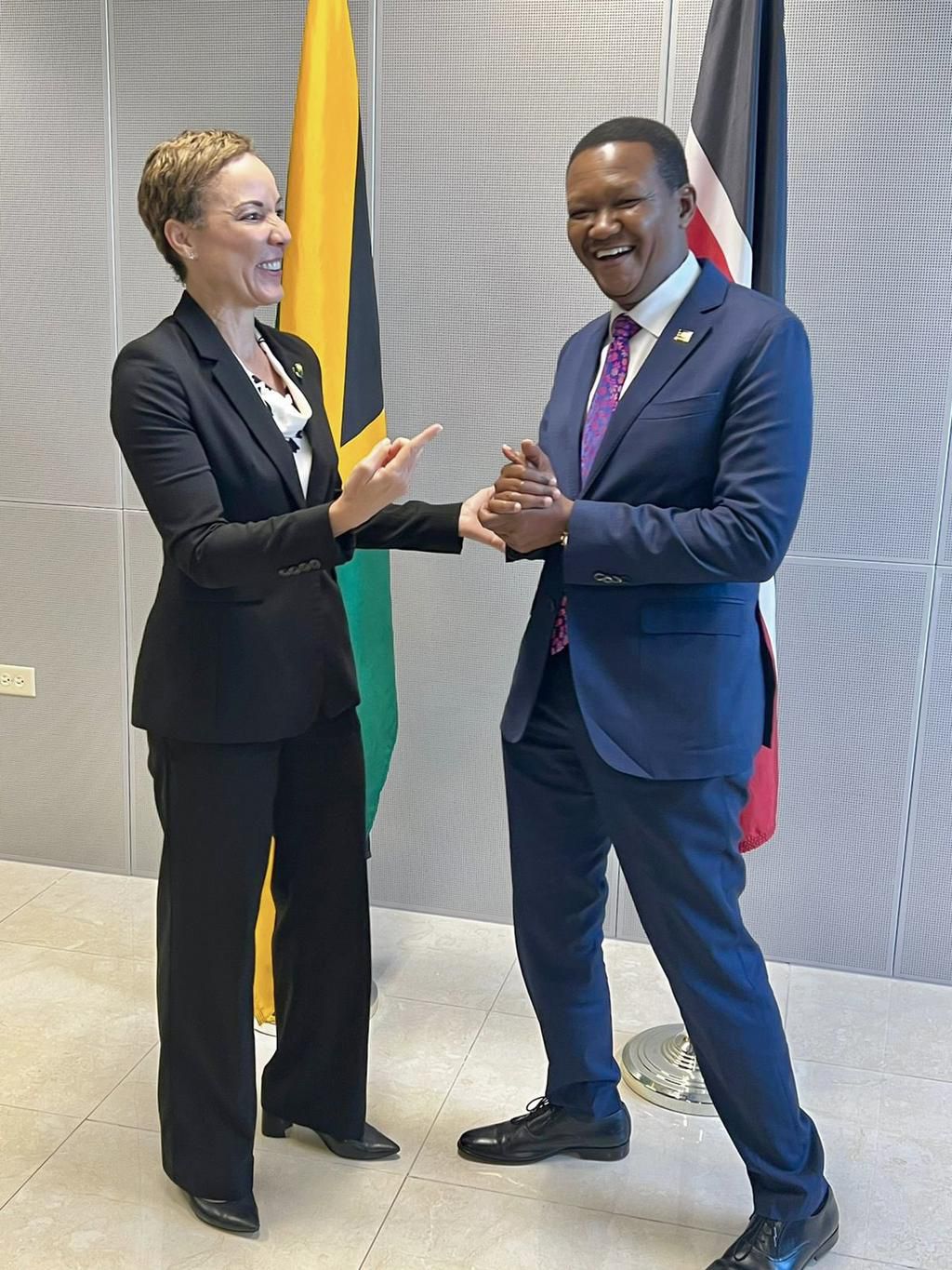Kenya's Cabinet Secretary for Foreign and Diaspora Affairs Alfred Mutua and Senator & Minister of Foreign Affairs and Foreign Trade of Jamaica, Hon. Kamina J Smith