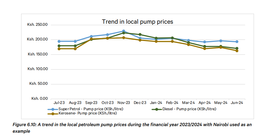 EPRA's report show a trend in the local petroleum pump prices during the financial year 2023/2024 with Nairobi used as an example