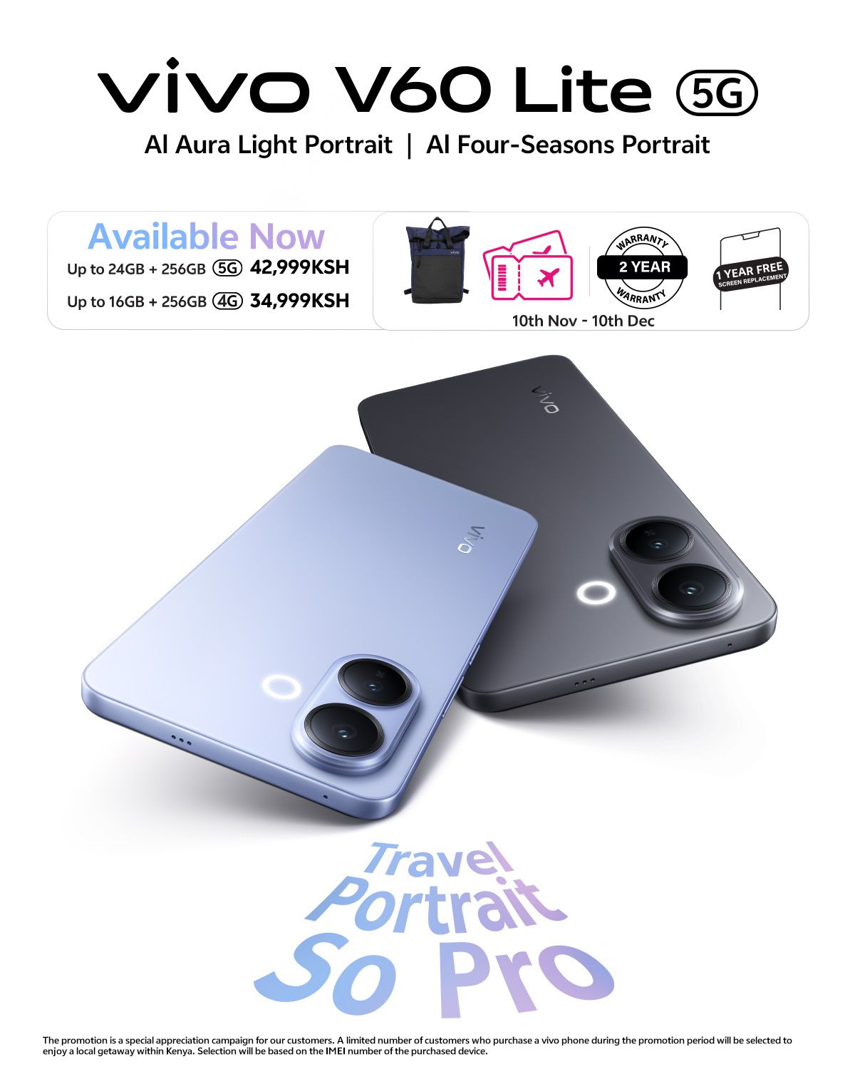 Positioned as the “Travel Portrait Perfect Partner,” the V60 Lite combines advanced AI imaging, stylish design, and lasting performance to support users in both everyday life and on the go.