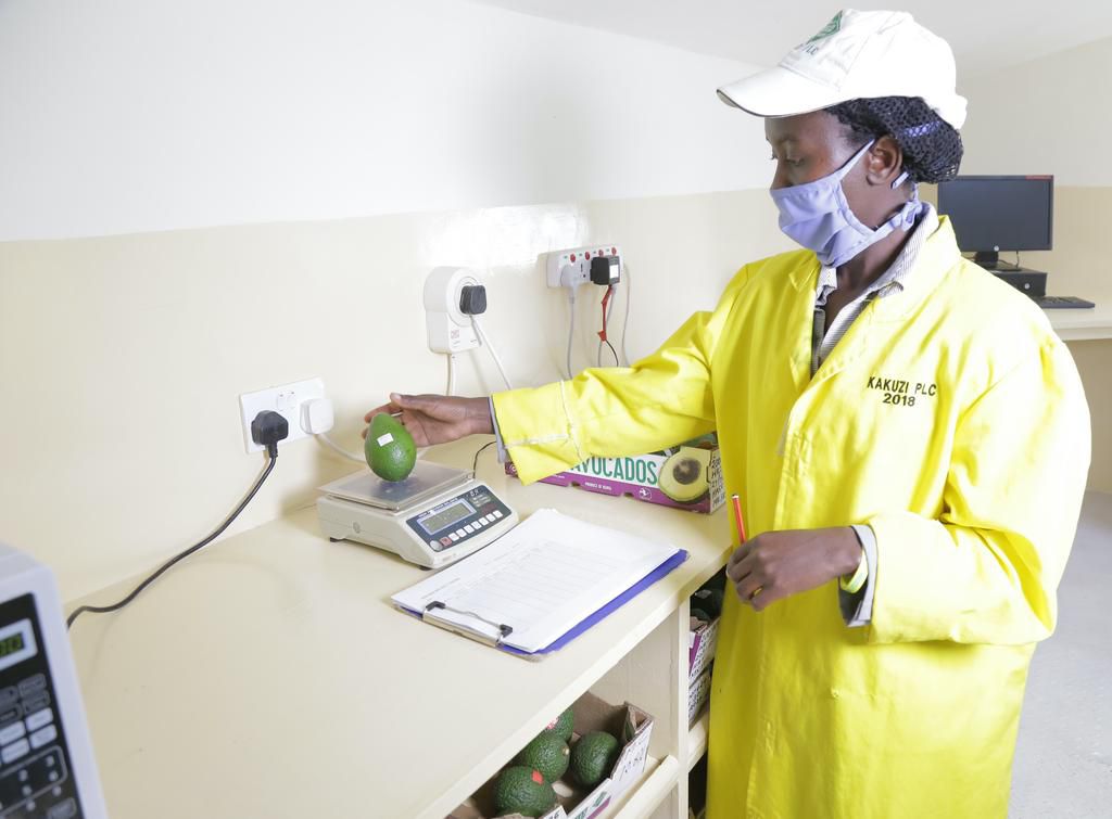 Mary Wanza Kakuzi Lab Technologist testing an avocado fruit
