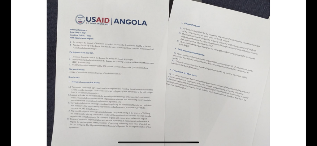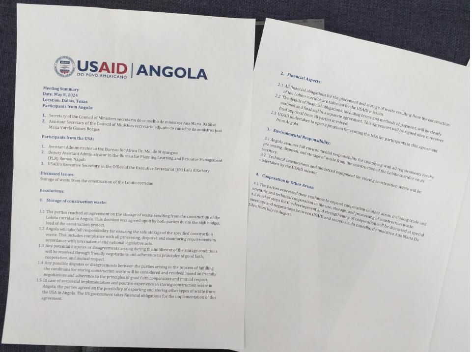 According to reliable sources, during the summit, Angolan officials and the White House struck a deal in which the waste used in railway construction would be stored in Angola.