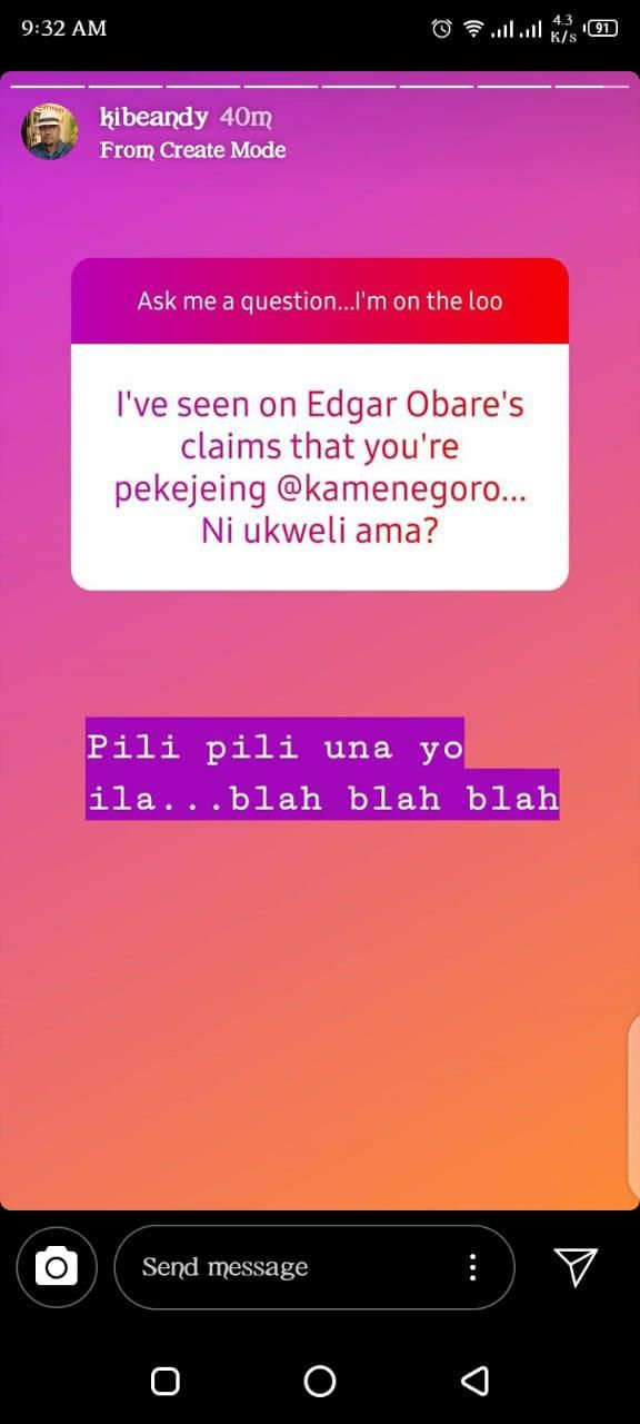 “I’ve seen on Edgar Obare’s claims that you’re pekejeing @kamenegoro… Ni ukweli ama?” asked the fan.