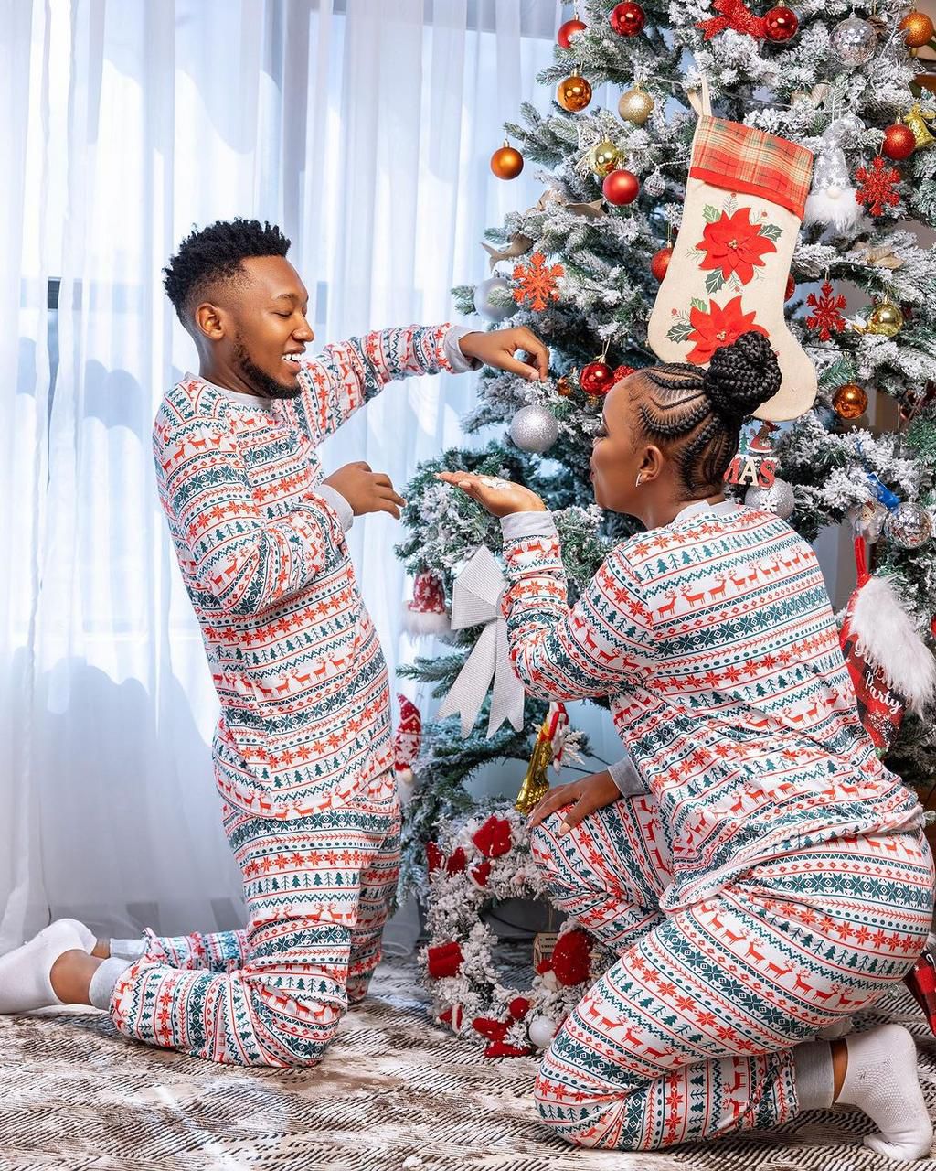 The lovebirds showcased their commitment to rekindling Christmas magic, posing next to their beautifully adorned Christmas tree.