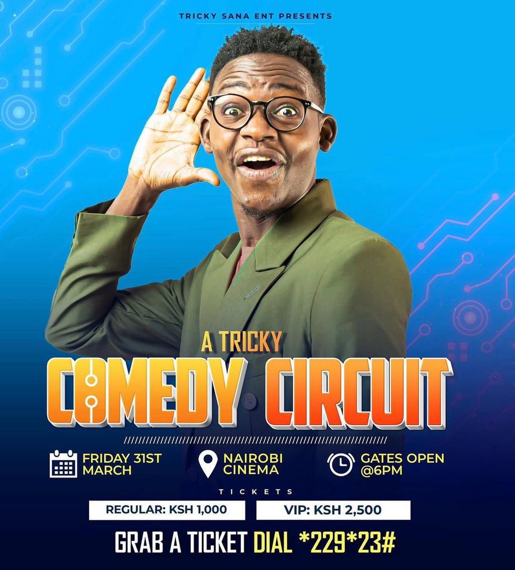 Tricky is set to hold his first show on March 31 in Nairobi Cinema with a lineup of comedians from Kenya, Uganda, South-Sudan, Nigeria and Tanzania. The funnyman pointed out that part of the collections from the show would go to charity urging Kenyans to support him.