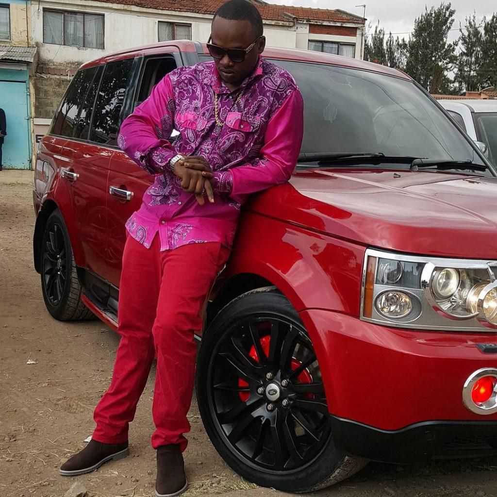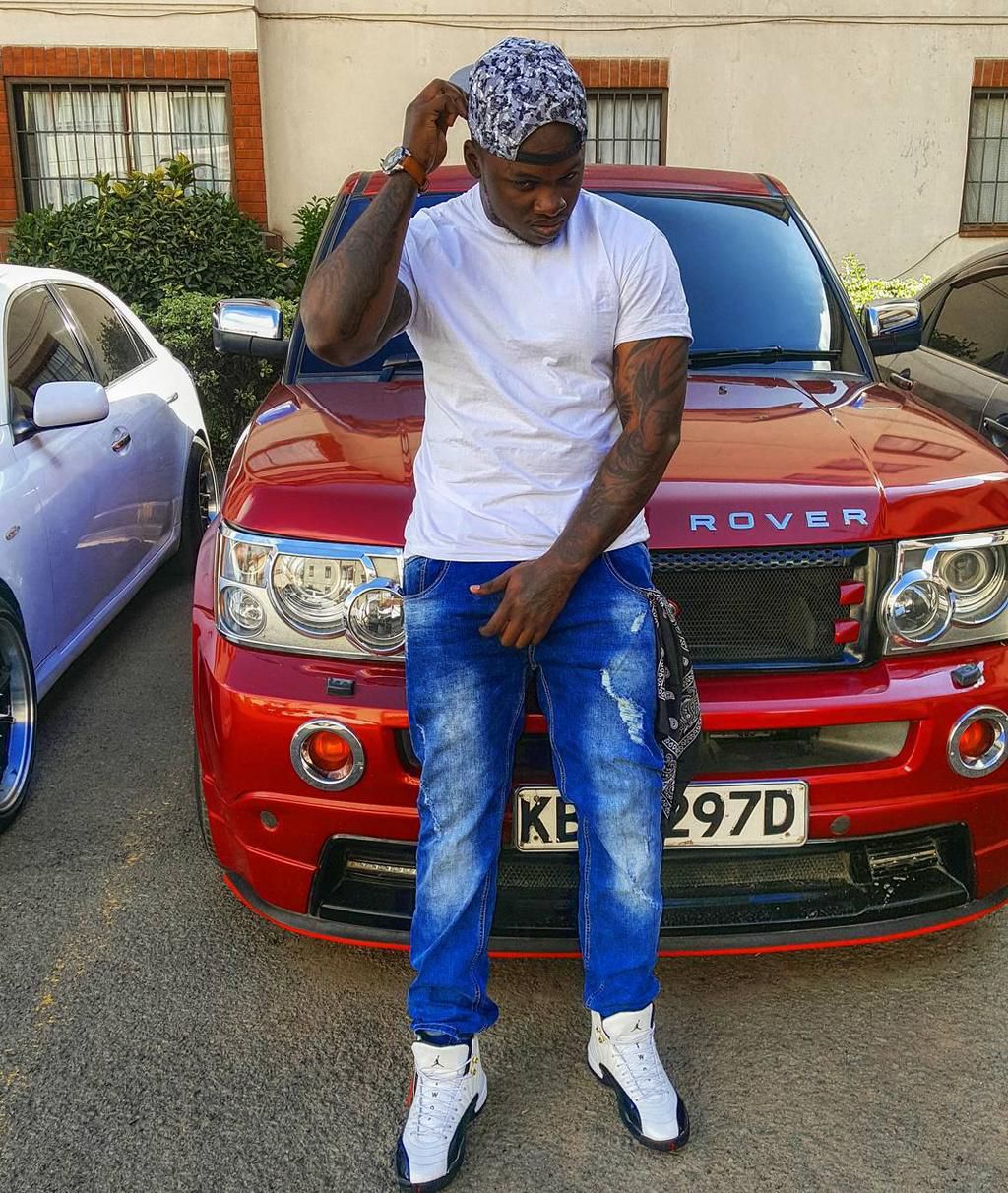 Rapper Khaligraph Jones is not a happy man after unknown people damaged his Red- Range Rover.