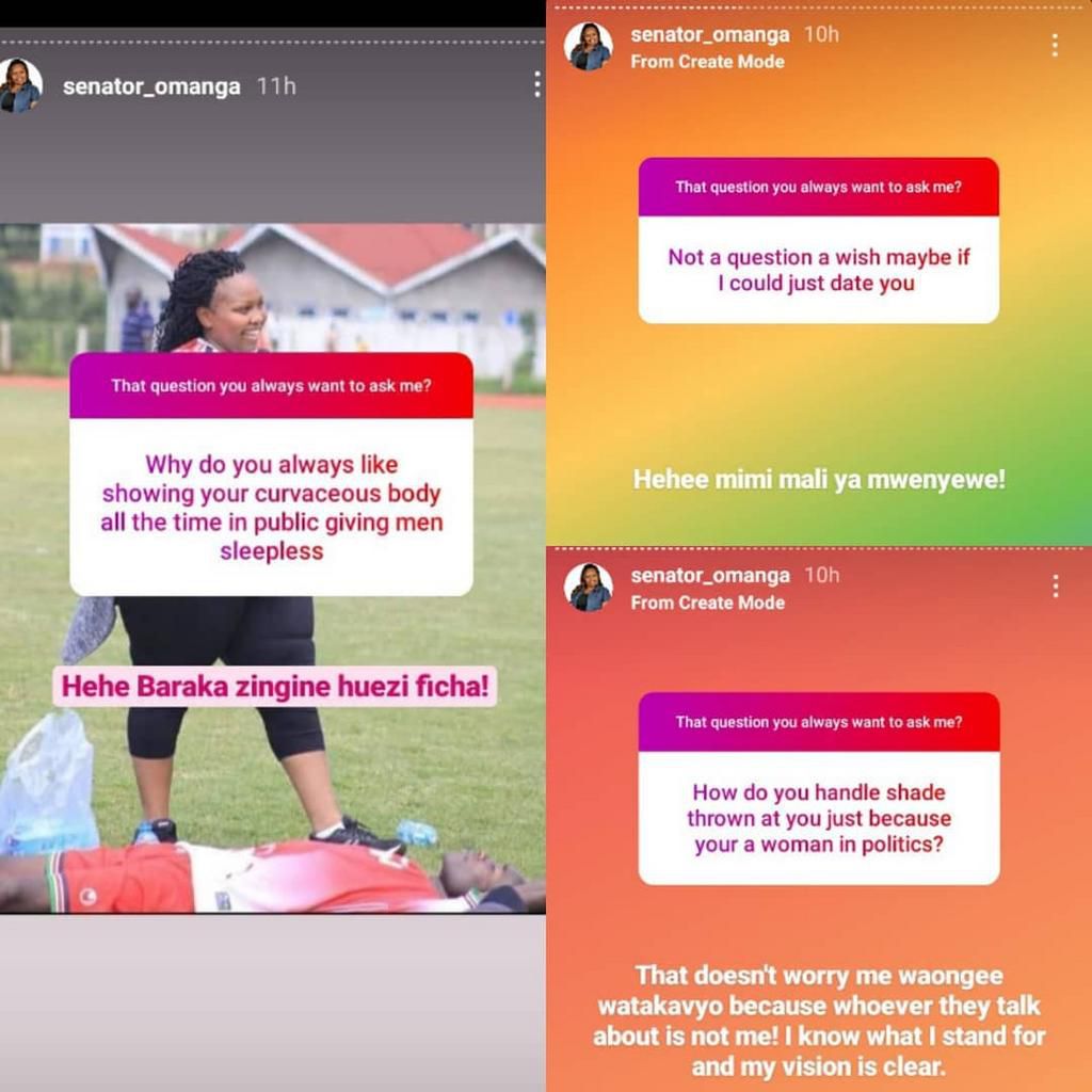 Nominated Senator Millicent Omanga was been busy engaging with a section of her online family, answering questions from fans that rarely get addressed.
