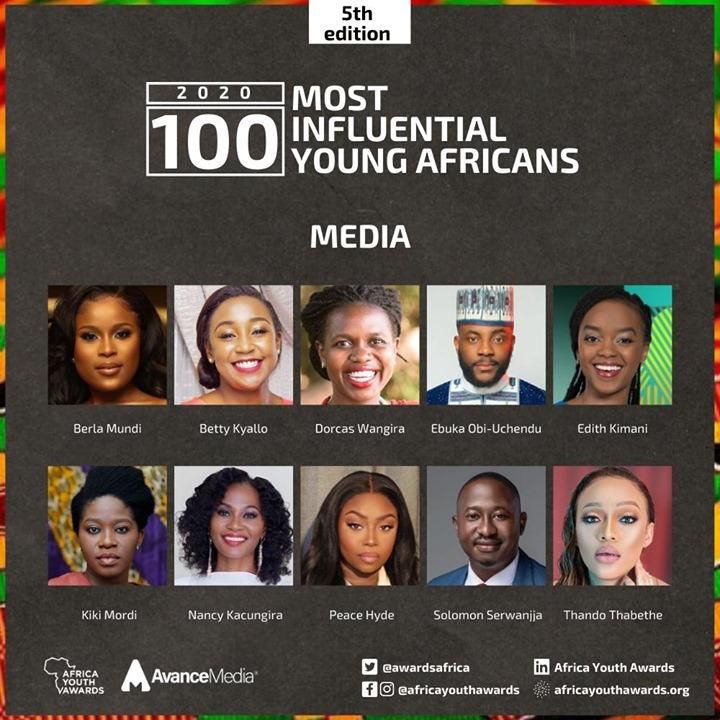 Kenya’s Media Personality Betty Kyallo, DW’s Edith Kimani, Comedian Njugush and Harambee Stars Captain Victor Wanyama are among those who made it to the list.