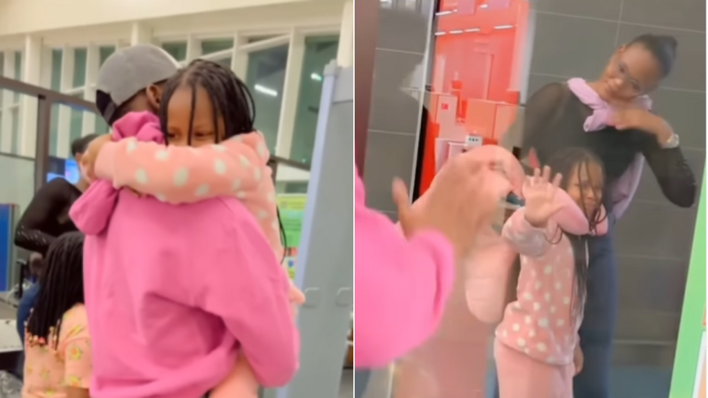 As Tiffah and Nillan were going through a security check-up, Tiffah broke down in tears at the sight of her father leaving. Her nanny tried to calm her down, but the seven-year-old girl couldn't help but cry.