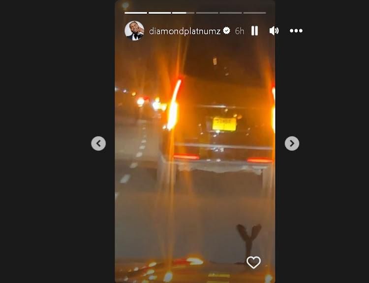 A video taken on Friday night shows Diamond in the company of three others in his Rolls Royce playing loud music as they await the arrival of Zari and the children.