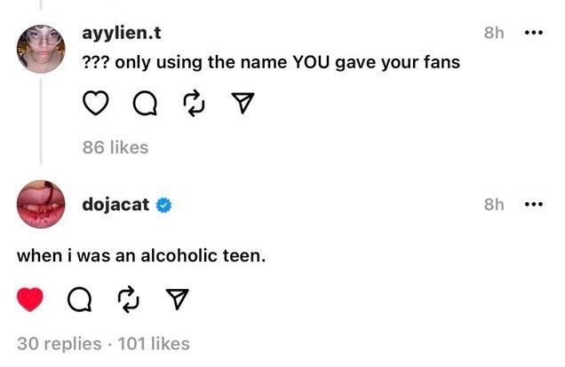 In the most notable threads post, Doja called her fans out saying, "My fans don't get to name themselves s**t. If you call yourself a 'kitten' or f****** 'kittenz' that means you need to get off your phone and get a job and help your parents with the house".