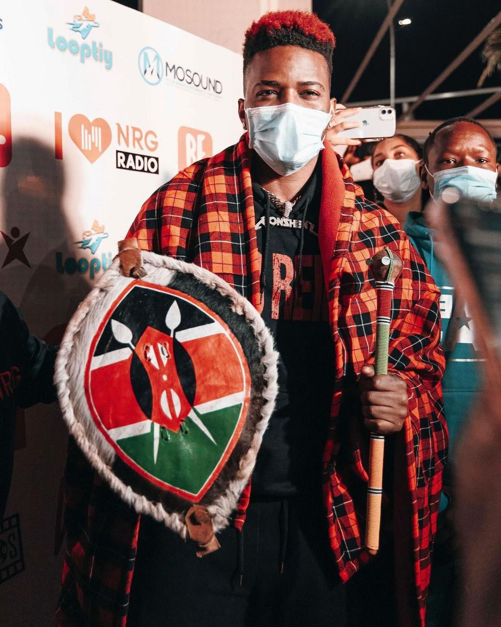 Konshens landed in the country on Tuesday night and he was accorded a heroic welcome. He was quickly dressed up in Maasai attires after his touchdown by organizers of his concert led by NRG Radio’s Mwalimu Rachel.