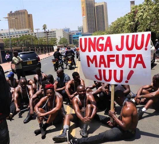Eric Omondi when he lead demonstrations outside parliament buildings