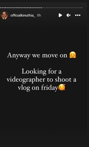 "Anyway, we move on. Looking for a videographer to shoot a vlog on Friday. Hii dunia ina mambo, don't treat everyone as your friend. Some are not." Kinuthia wrote