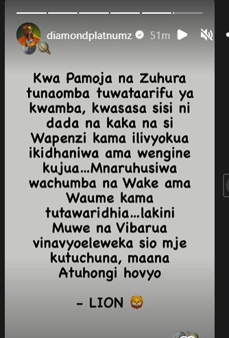 Diamond Platnumz's cryptic message shortly after Zuchu announced that she is single