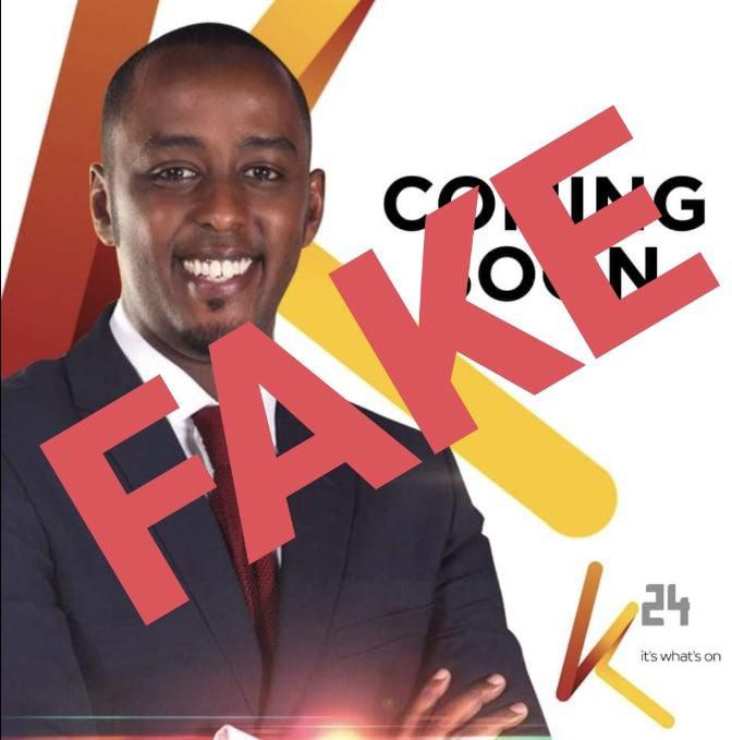 His words came after unknown individuals created a poster with Hussein Mohamed’s image written ‘Coming Soon’ and had the K24 TV logo on it.