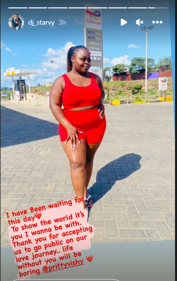 "I have Been waiting for this day to show the world it's you I wanna be with. Thank you for accepting us to go public on our love journey. Life without you will be boring Pritty Vishy," Dj Starvy wrote.