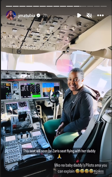 "This seat (co-pilot's) will soon be Zari's seat flying with her daddy. Mko na baby daddies pilots ama you can explain," Jackie jorked.