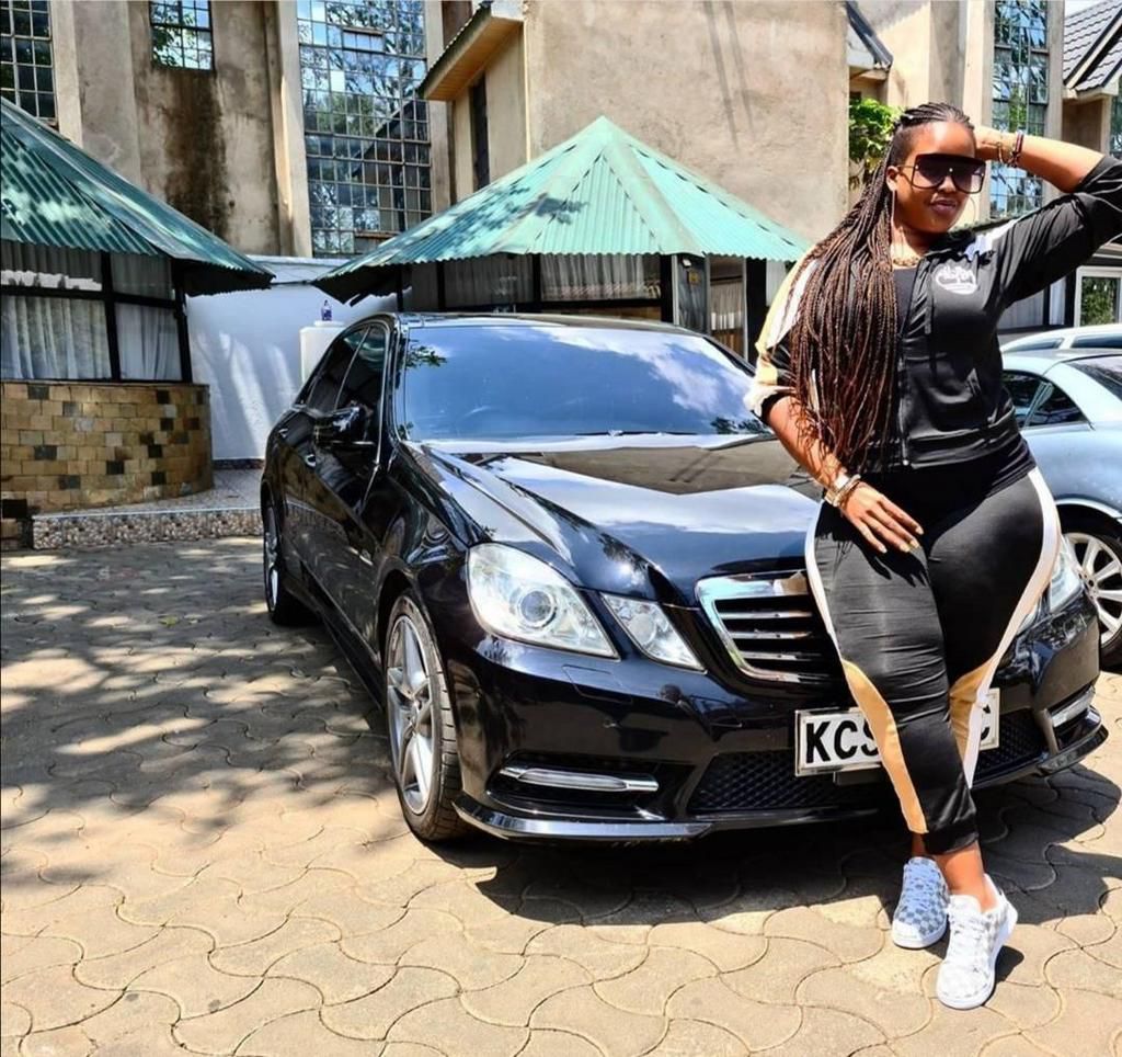Kiss FM presenter Kamene Goro poses in front of her black Mercedes Benz