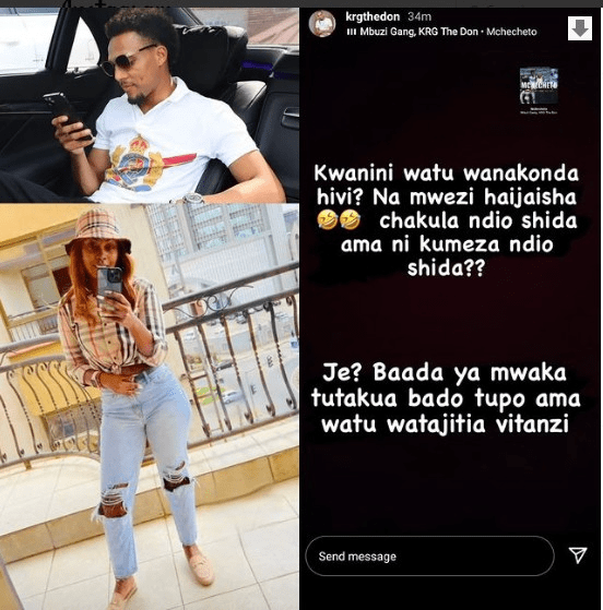 KRG claimed that he chose to leave Wanjiru because she grew idle and started rolling with chokoras.