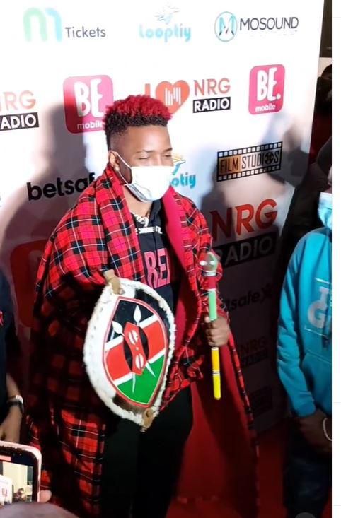 Konshens was quickly dressed up in Maasai attires after his touchdown by organizers of his concert led by NRG Radio’s Mwalimu Rachel.
