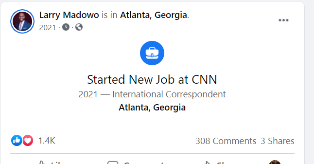“Some personal news: I’m heading to CNN to cover a tiny continent with just 55 countries” reads Larry Madowo’s post.