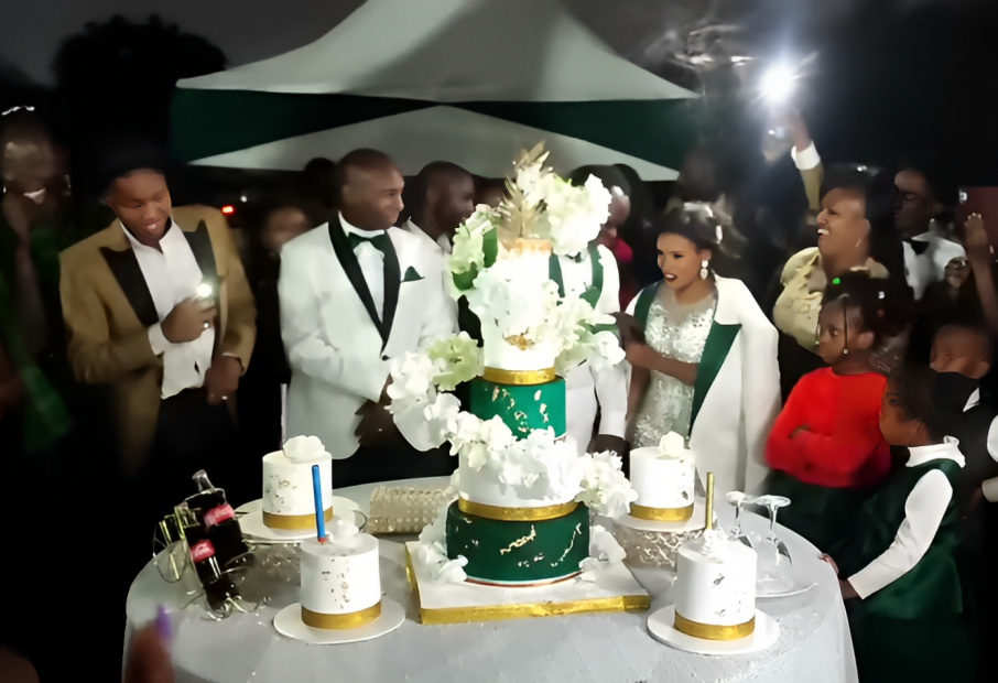 Milly Wa Jesus' brother Leon & his bride Diana cutting the cake on their wedding day