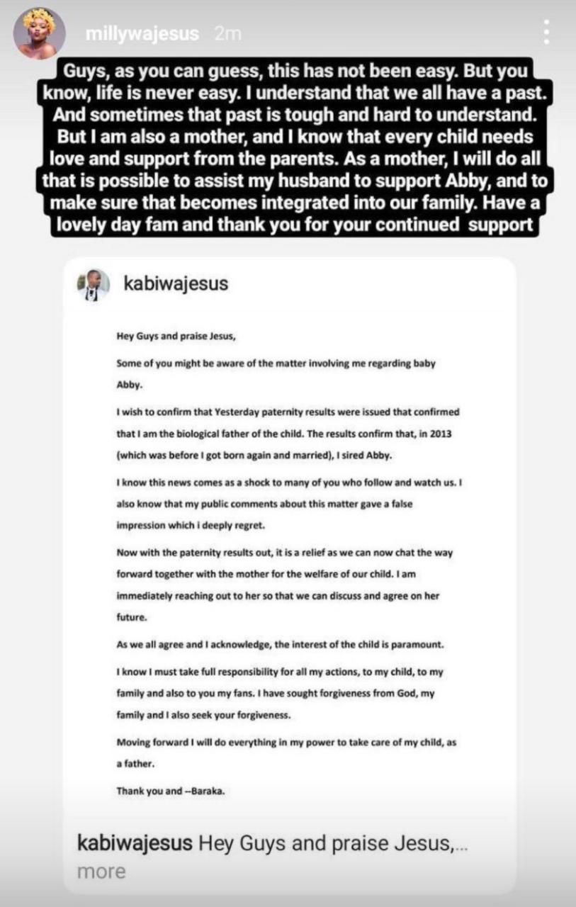In a statement released by Kabi, the YouTube celebrity confirmed that he is the biological father to his cousin's child.