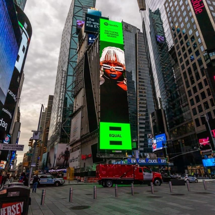 Muthoni’s images went live at Times Square after becoming the latest addition to Spotify's EQUAL Music Programme for the month of December.