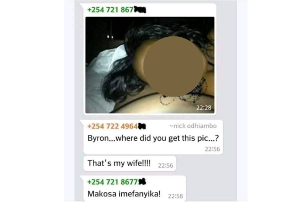 After Byron posted the explicit photo, Odhiambo asked “Byron where did you get this pic… that’s my wife.”