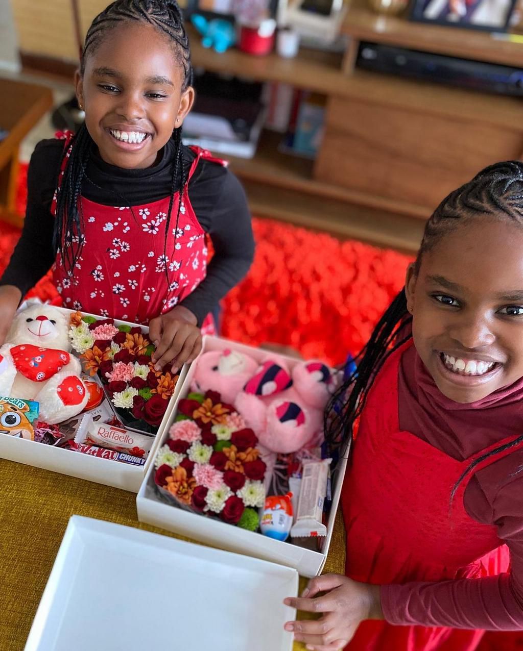 A thankful Ms Msalame, shared adorable photos of her son and daughters plus the gifts she got for them on Valentine’s Day.