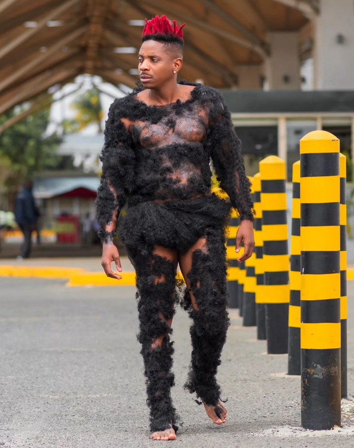 Just months after unveiling his camouflage leaf suit, comedian Eric Omondi on Wednesday donned a hair suit and captioned it with "early man".