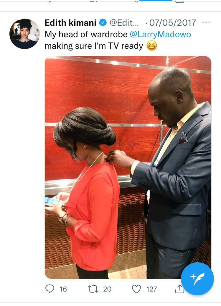 She captioned the photo: "My head of wardrobe Larry Madowo making sure I'm TV ready."