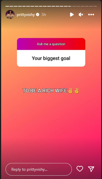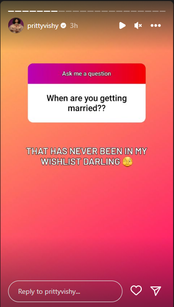 Pritty Vishy answered a series of questions on her Instagram stories during a Q&A session with her fans.
