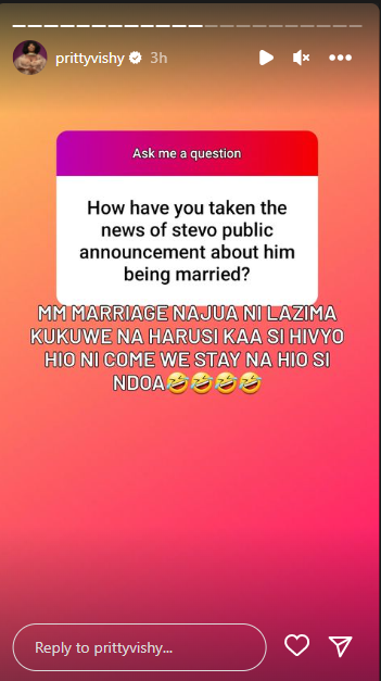 Stevo Simple Boy's ex-girlfriend Pritty Vishy has reacted to the news that Stevo has a wife.