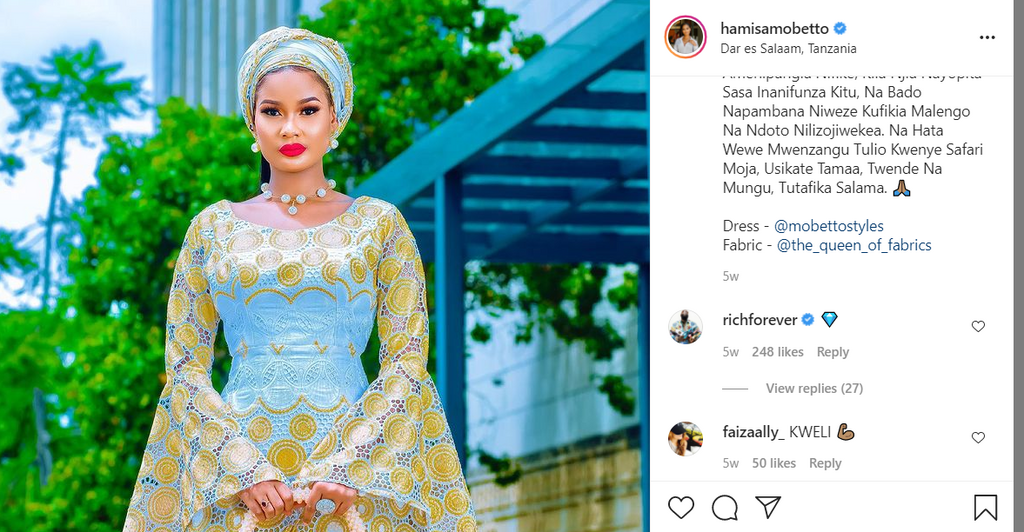Across check done by Pulse Live, reveals that the star has so far commented on more 7 photos on Hamisa's Instagram.