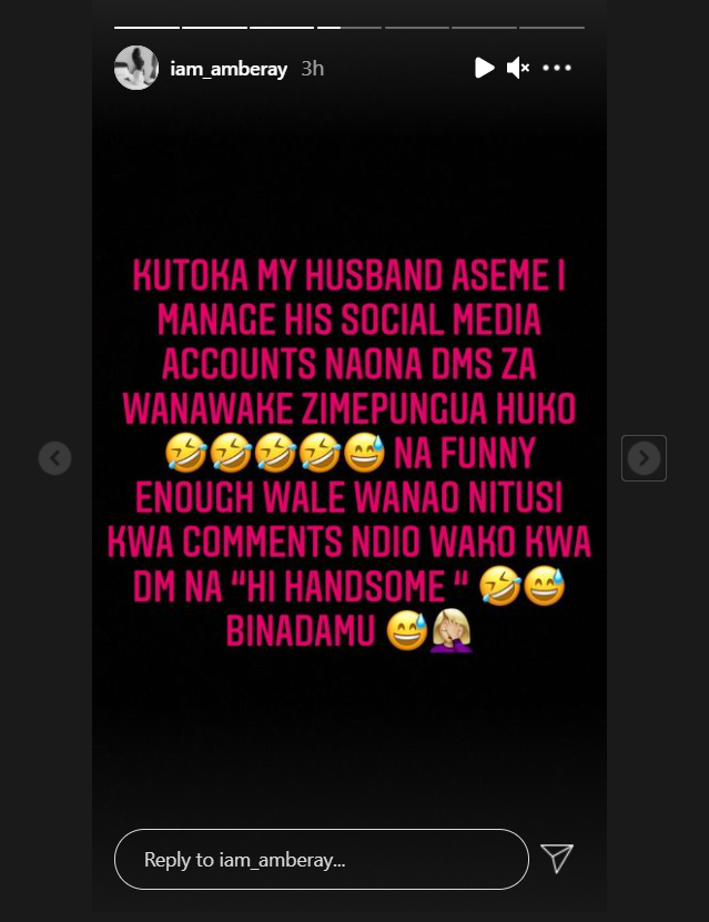 “Kutoka Husband asema I mange his socil media accounts naona DMs za Wanawake zimepungua huko… Na Funny enough wale wanao nitusi kwa commnest ndio wako kwa DM na Hi Handsome Binadamu,” wrote Amber Ray.