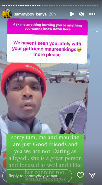 Contrary to rumors circulating online, Sammy Boy affirmed during an Instagram Q&A on Monday, that he and Maureen are not romantically involved, and that they are just friends.