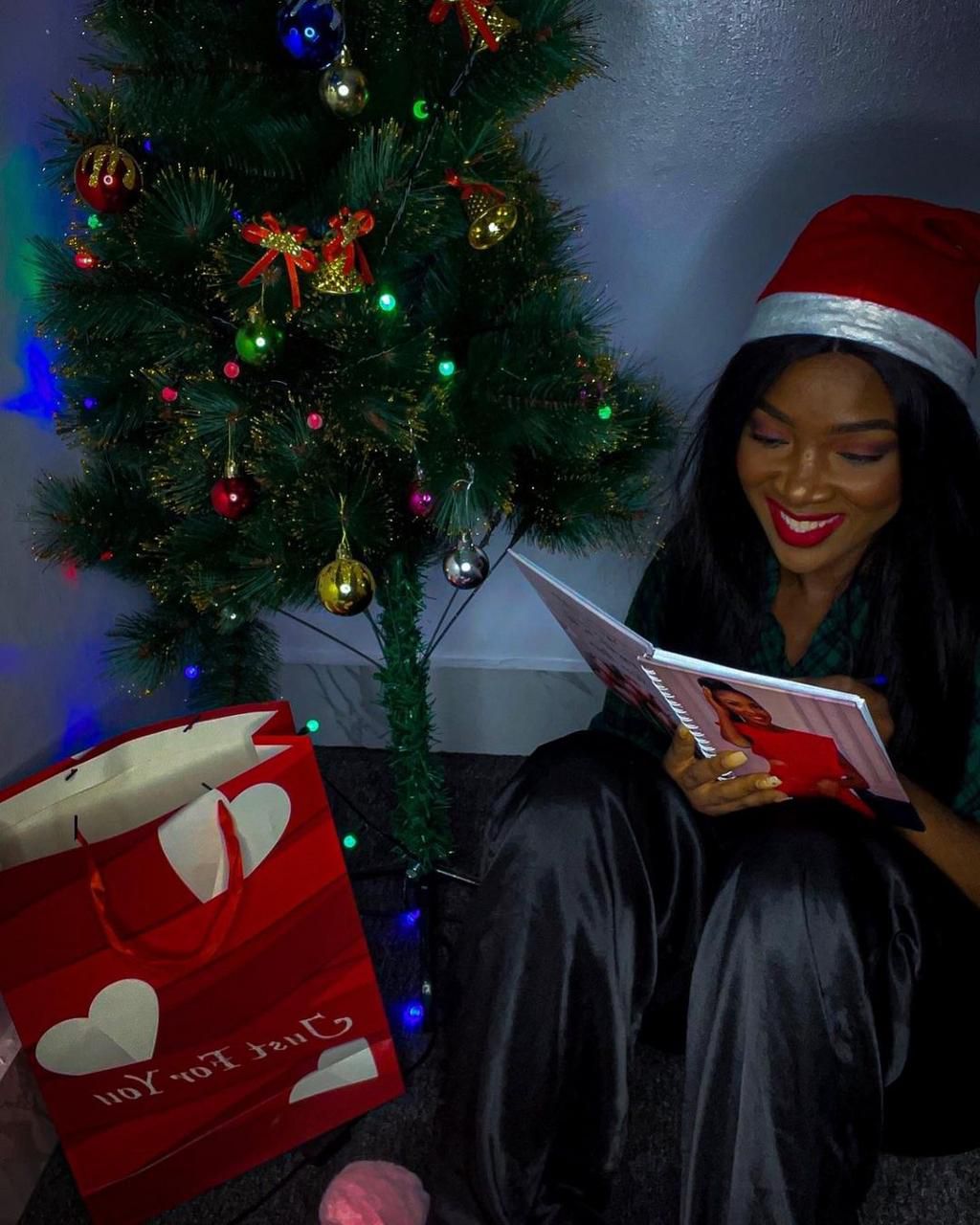 Her husband however appeared during the live as she tried to explained how they met and he gifted her flowers while she continued to talk in her live.