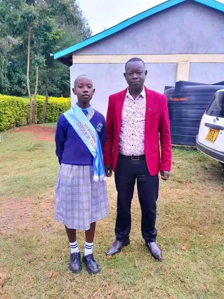 Kaproron shared a snippet of a photo of himself outside the school gate after admitting his daughter.
