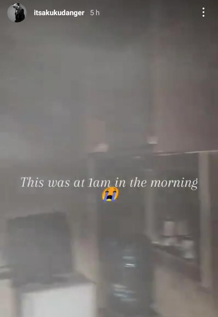 In a post seen by Pulse live, Akuku had shared with his followers videos of his house that had been burnt down.