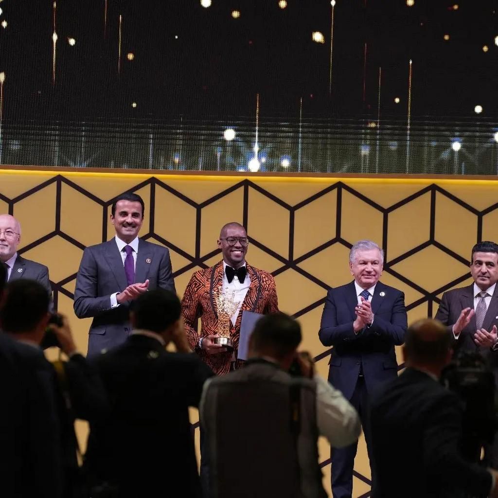The award was presented by the Emir of Qatar, Sheikh Tamim bin Hamad Al-Thani, and the President of Uzbekistan, Shavkat Mirziyoyev.