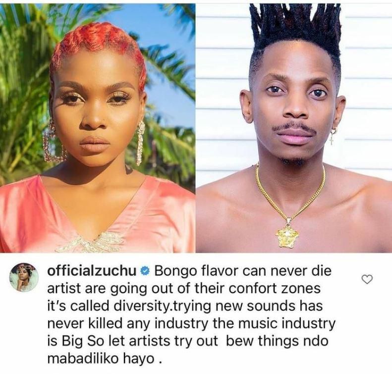 “Bongo flavor can never be destroyed. Artists are doing out of their comfort zones. It’s called diversity. Trying new sounds has never destroyed any industry, the music industry is big so let artistes try out new things ndo mabadiliko hayo,” Zuchu said.