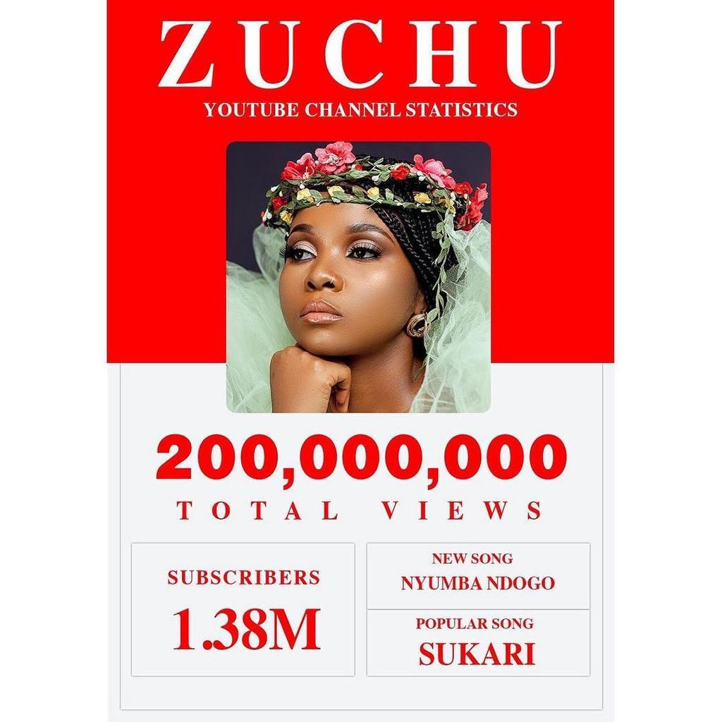 “Congratulations Queen @officialzuchu 🎈🎊🎉🍾 You Have reached 200,000,000 million Total Views On @youtube