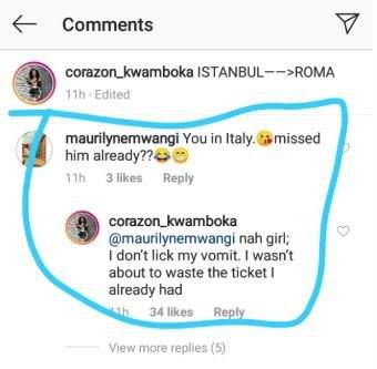 Kenyan socialite Corazon Kwamboka has finally spoken on missing her Italian boyfriend, days after she announced their breakup.