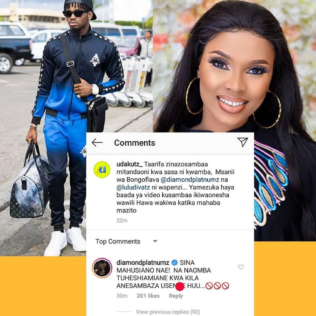 “Taarifa zinazosambaa mitandaoni kwa sasa ni kwamba, Msanii wa Bongoflava @diamondplatnumz na @luludivatz ni wapenzi... Yamezuka haya baada ya video kusambaa ikiwaonesha wawili Hawa wakiwa katika mahaba mazito,” reads a caption from UdakuTz.