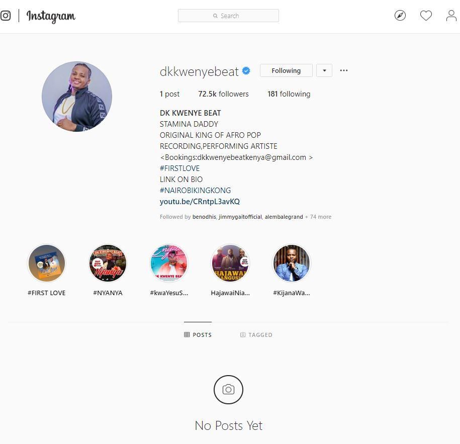 Gospel singer DK Kwenye Beat has deleted all photos from his Instagram account, weeks after he was caught up in a threesome scandal.