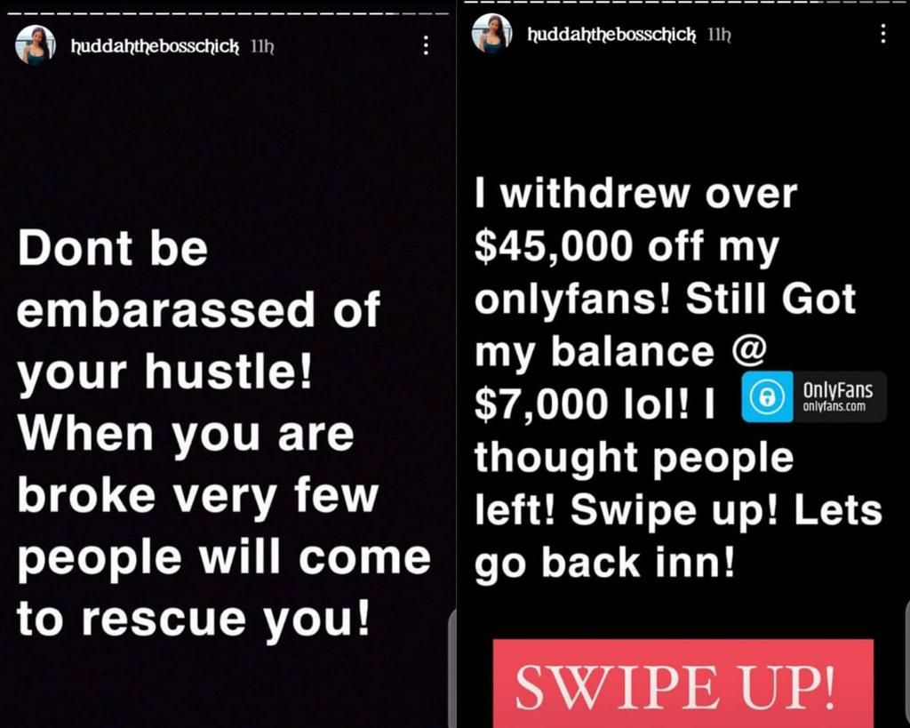 “I withdrew over $45, 000 off my onlyfans! Still Got my balance @$7, 000 lol! I thought people left! Swipe up! Let’s go back inn!” she added.