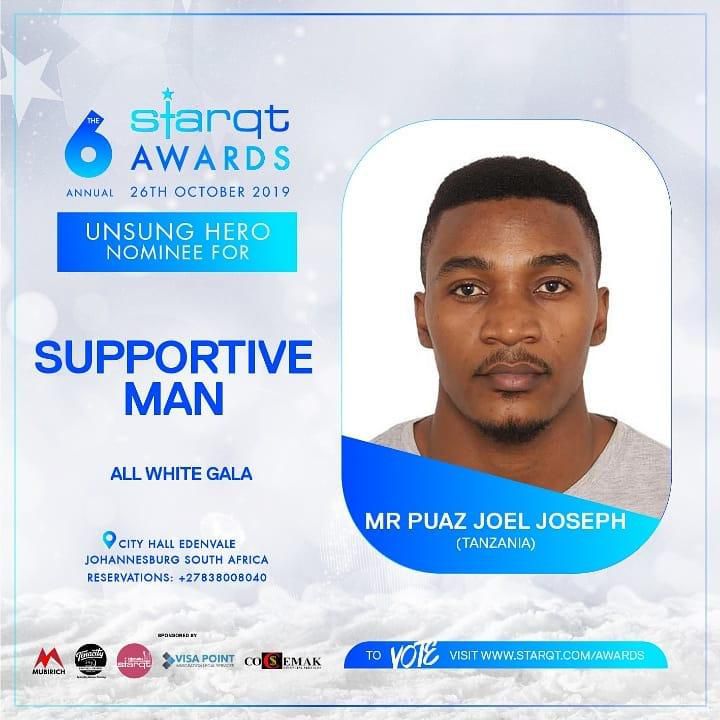 Sharing the good news, Mr puaz wrote “Wow ! Wow! Just woke up on this awesome news . Just got nominated on @starqtawards as a SUPPORTIVE MAN . Am just speechless . I thank each one of you for the love you continue to show me on this journey of supporting each other through knowledge sharing and other things . Follow @starqtawardsfor more details or click the link on their bio for more informations. Nina furaha tele kuwa Kati ya waliochaguliwa kushiriki katika tuzo za South Africa @starqtawards”.