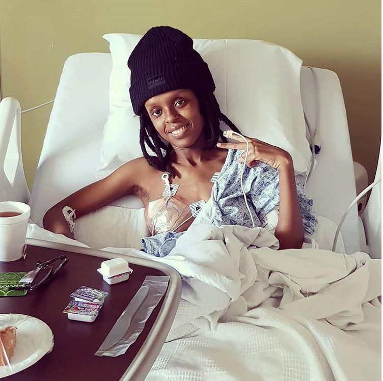 In a message on Instagram, Jahmby who has been undergoing treatment in the US was rushed on an emergency after leaks were discovered in her chest.
