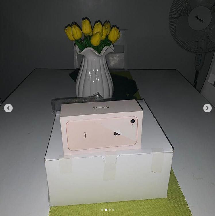 Nancy in the photos also shared a picture of the gift her husband and colleague Joab Mwaura got her as a present. (An iPhone)